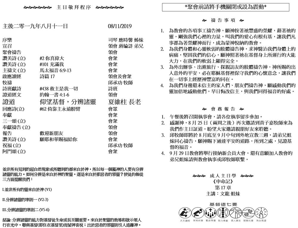 Sunday worship starts at 10AM, followed by sunday school at 11:30AM and luncheon at 12:30PM. If you would like to know Jesus, plese join us and change your life!.
