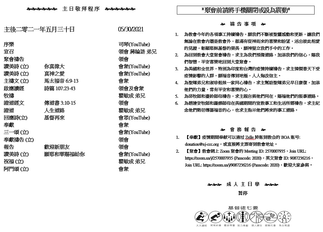 疫情時期教會的聚會暂时用ZOOM网上聚会型式, 歡迎新老朋友参加!